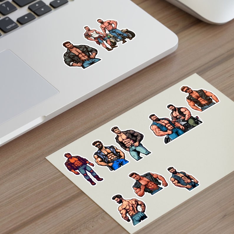 10 Stickers Sheet Leathermen Bikers Muscular Handsome Gay Queer Decals ...