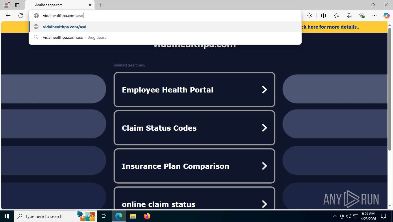Malware analysis vidalhealthpa.com Malicious activity | ANY.RUN ...