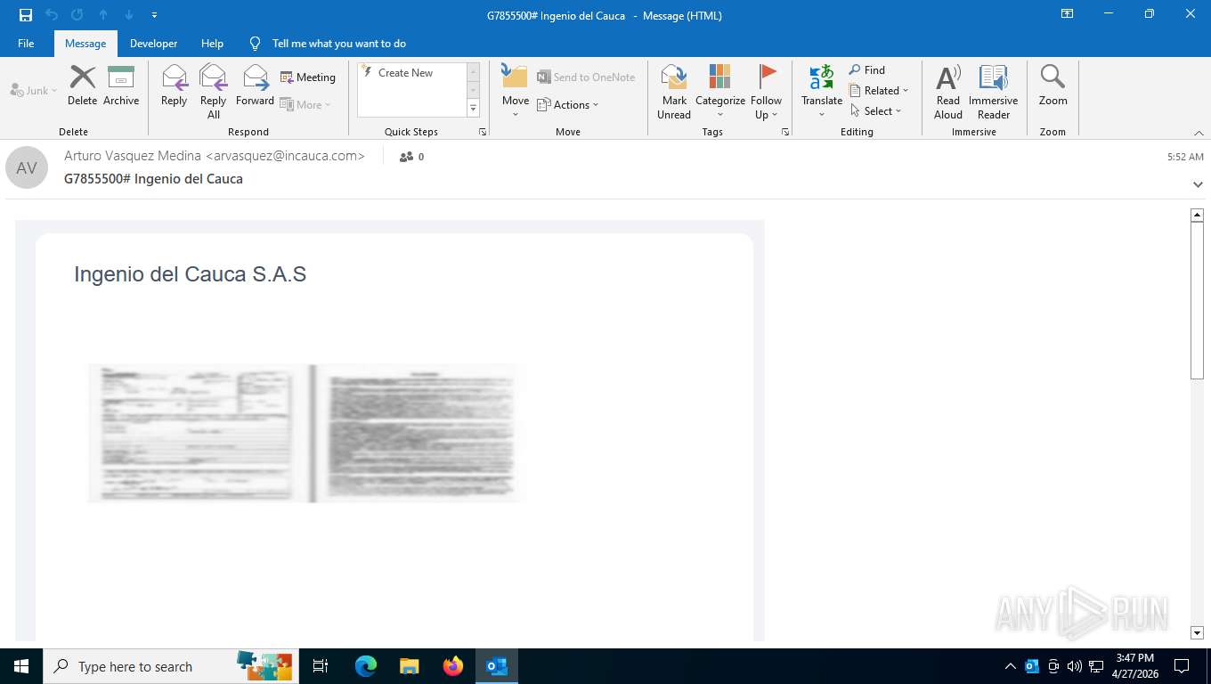 Malware analysis G7855500_Ingenio_del_Cauca.eml Malicious activity ...