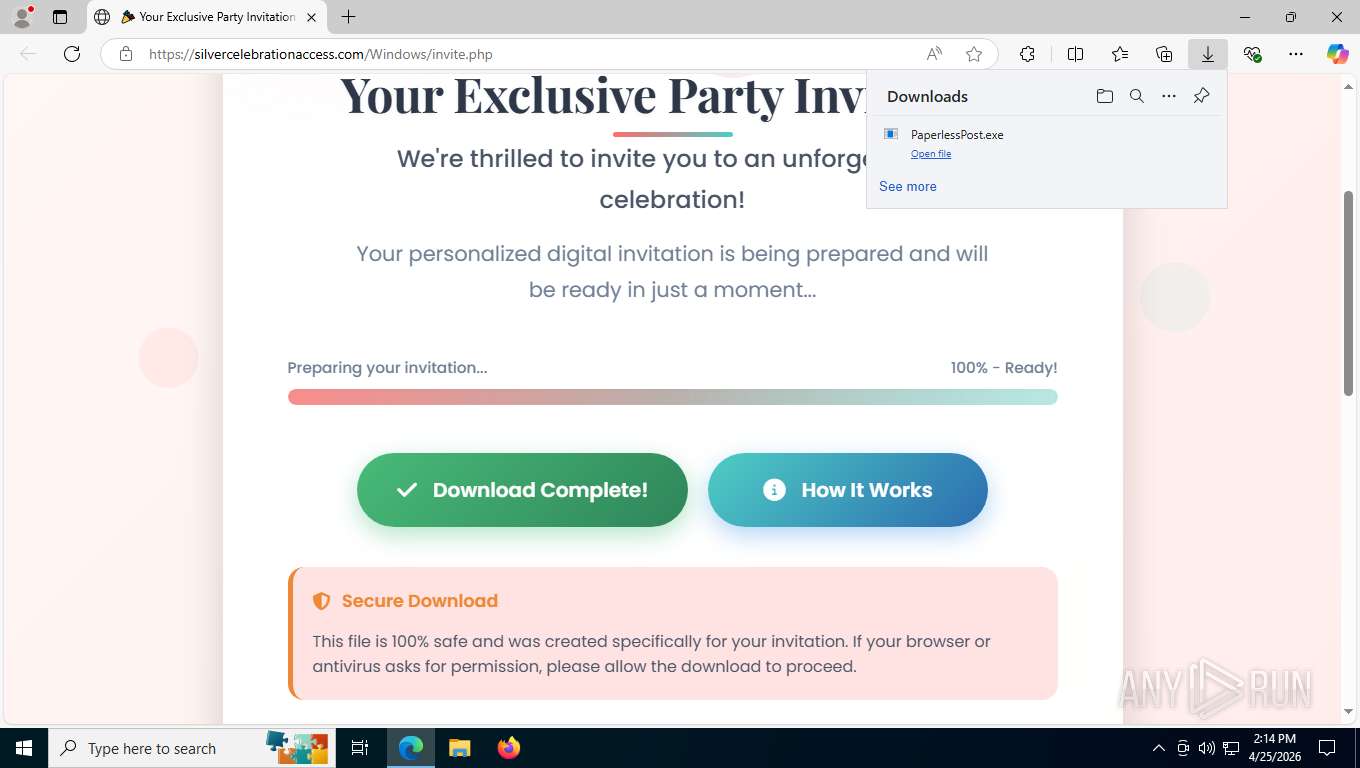 Malware analysis https://silvercelebrationaccess.com/Windows/invite.php ...