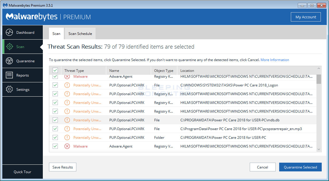 Malwarebytes system scan