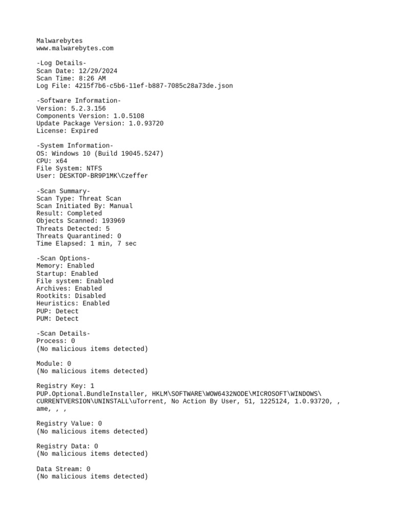 Malwarebytes Scan Report 2024-12-29 072645 | PDF