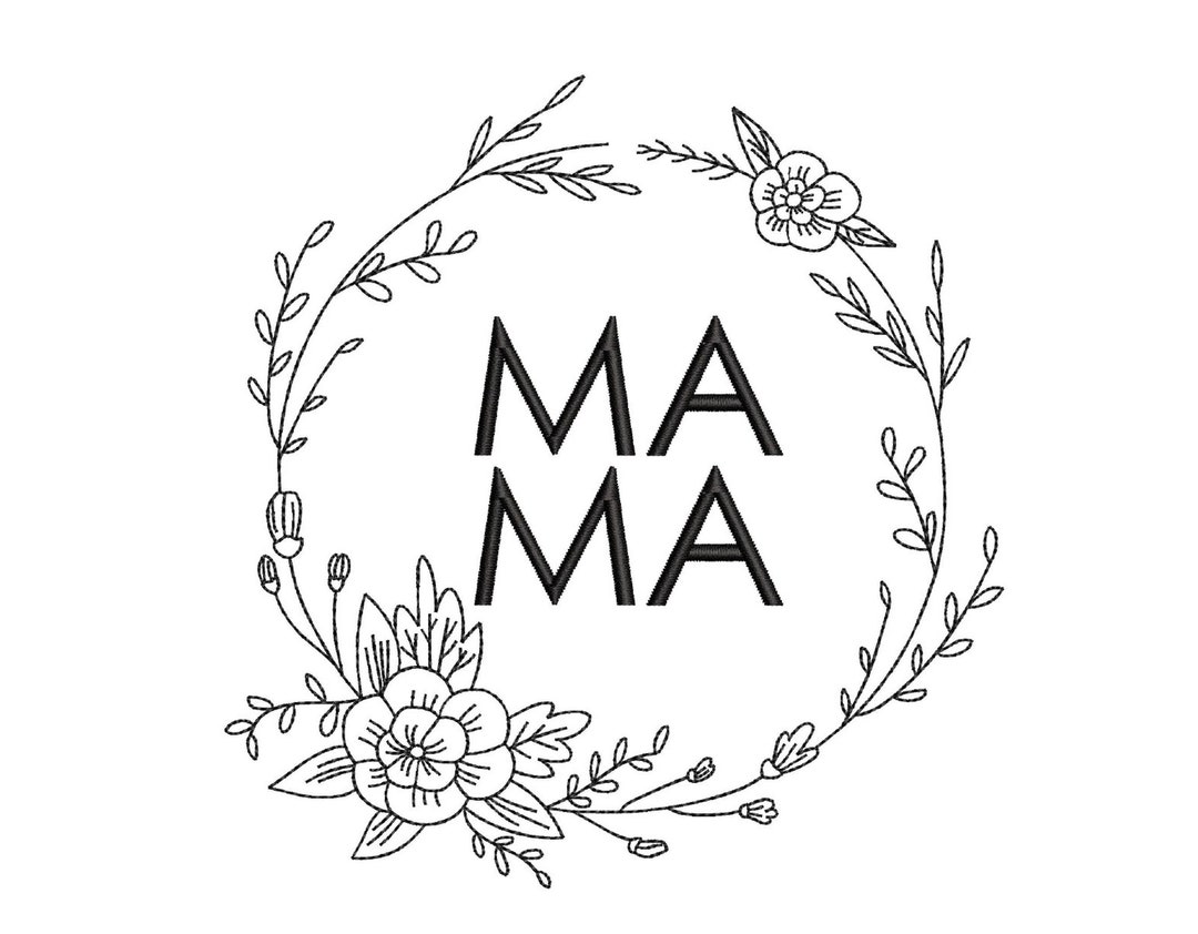 Mama Embroidery Design, Mama Line Art Embroidery Design, Machine ...