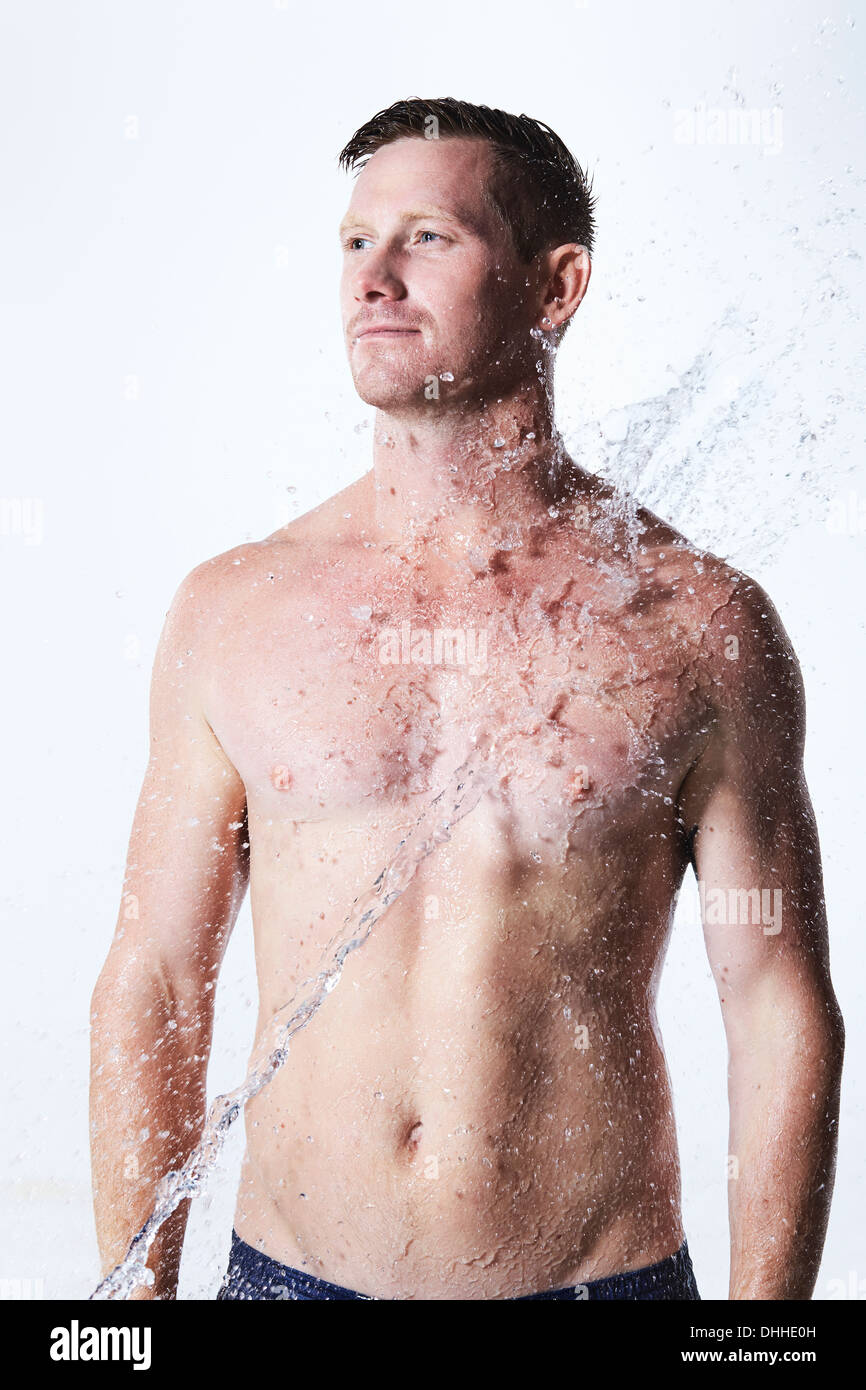 Male Splashed with Water Stock Photo - Alamy