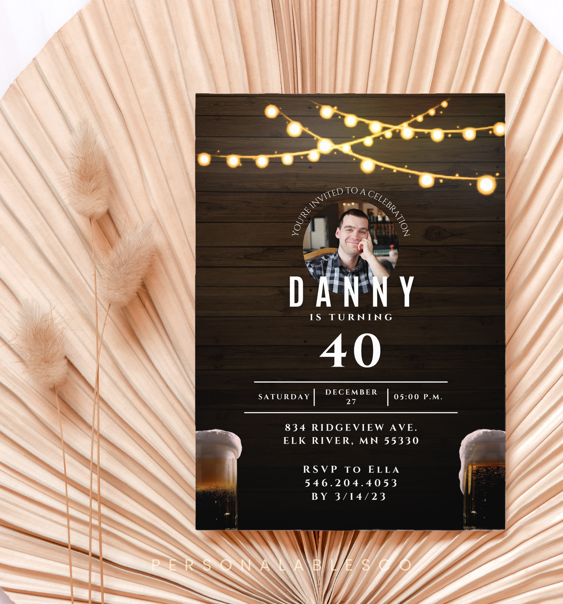 Editable Any Age Birthday Celebration Party Invite Adult Men Photo Bday ...