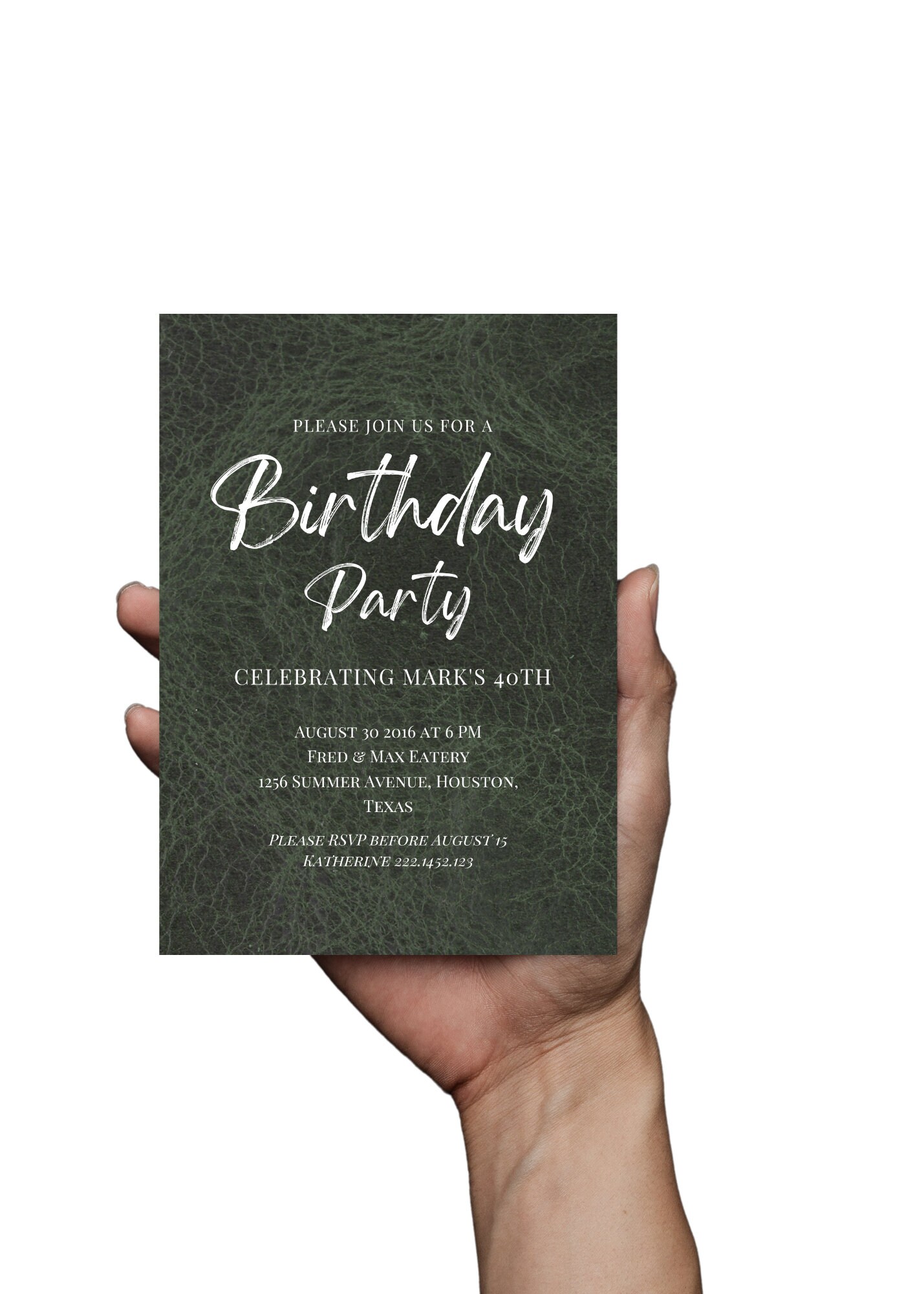 Editable Birthday Party Invitation for Men, Green Invite, Masculine ...