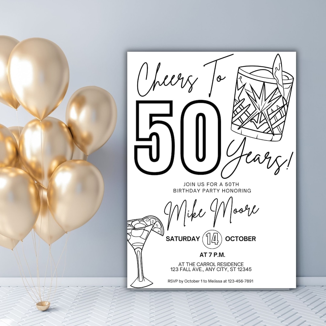 Men's 50th Birthday Invitation Template, Editable 50th Birthday ...