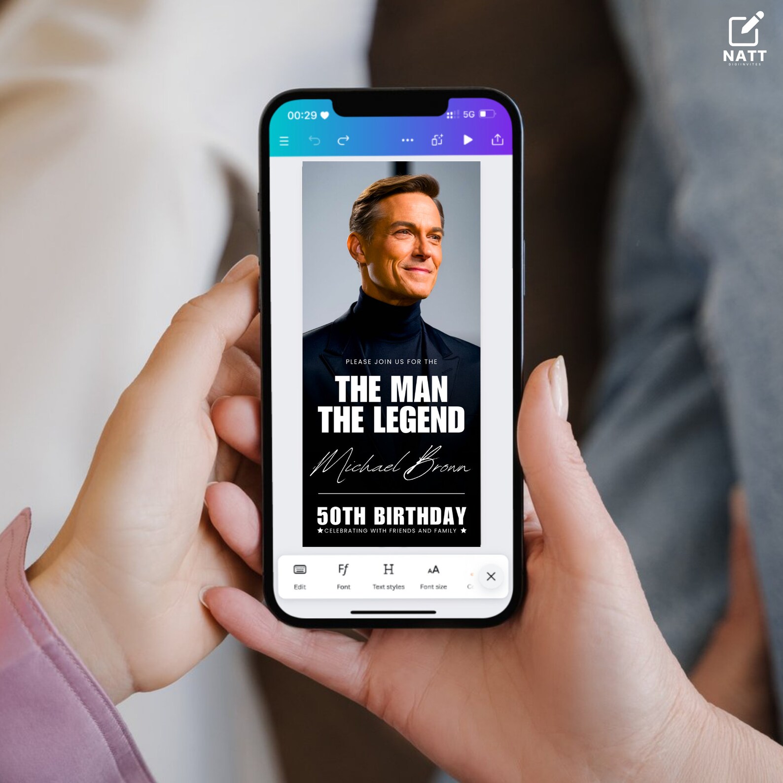 Digital Men Birthday Invitation Template, the Man the Legend, Men ...