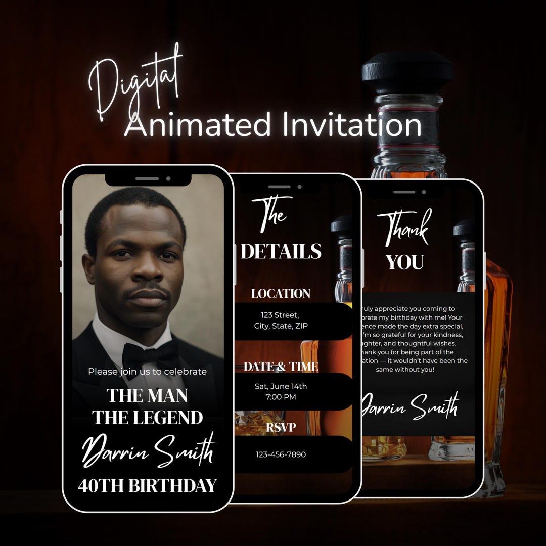 Men's Birthday Invitation Digital, Editable Animated Template, Guy ...