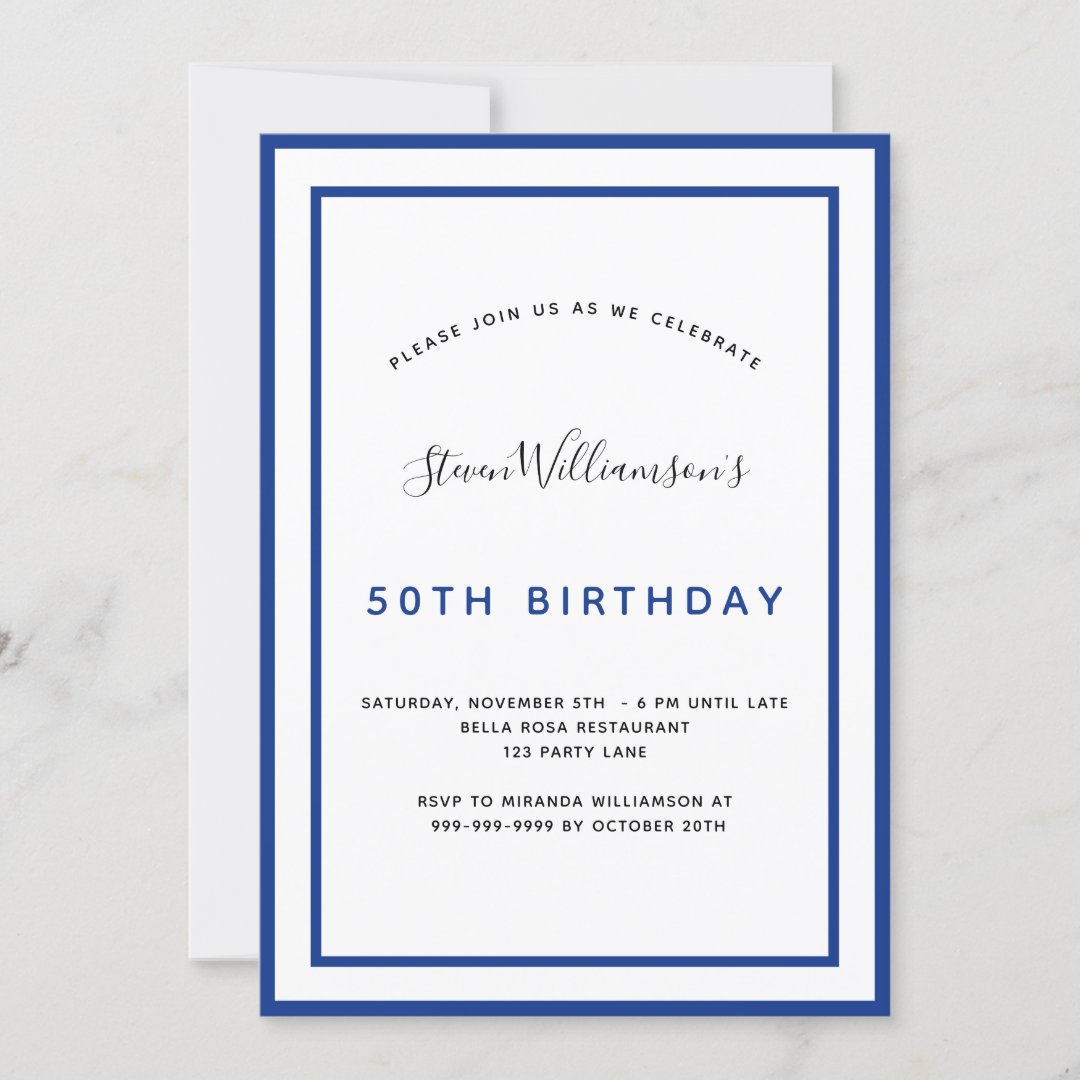 Birthday navy blue white minimalist men guy invitation | Zazzle