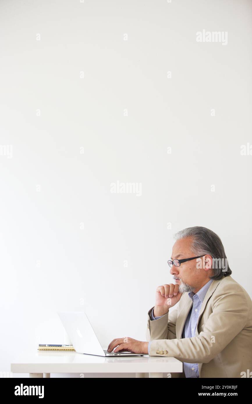 Japanese Man Operating A Computer Stock Photo - Alamy