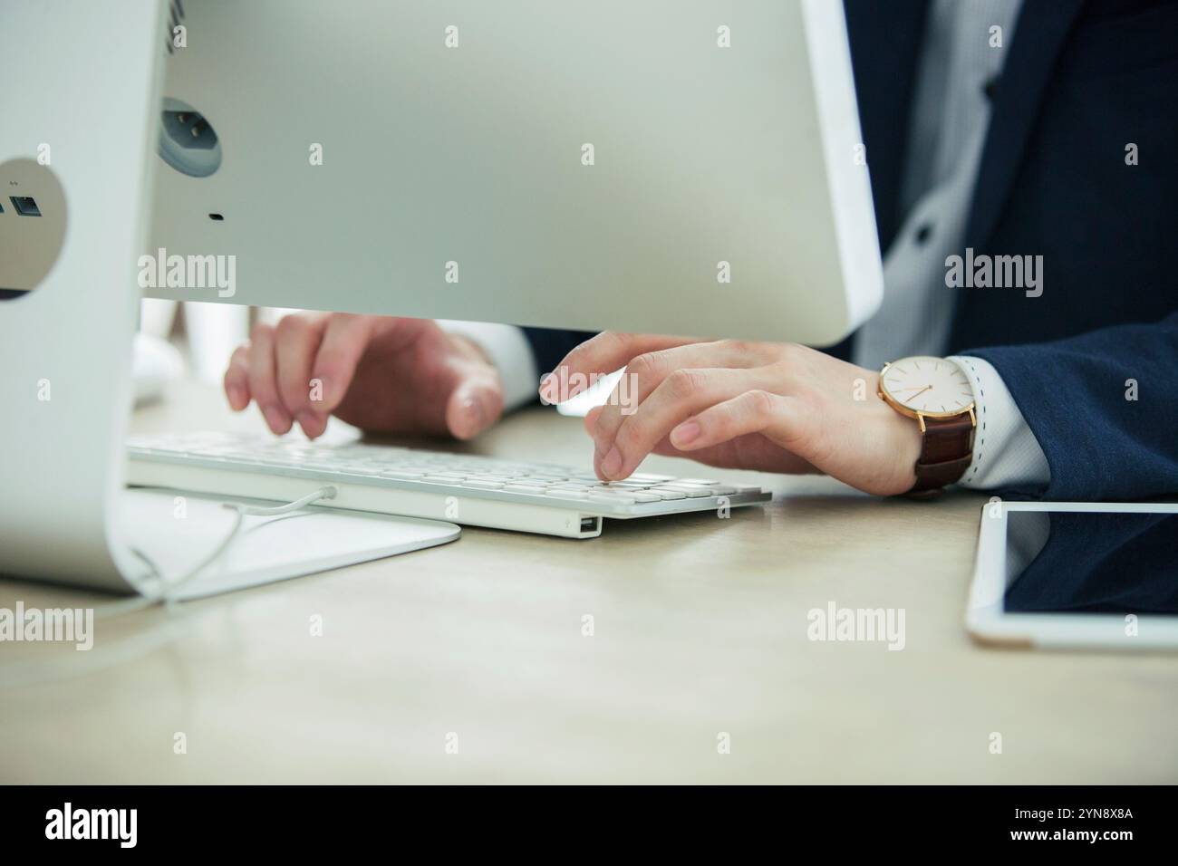 Japanese man at hand operating a computer Stock Photo - Alamy