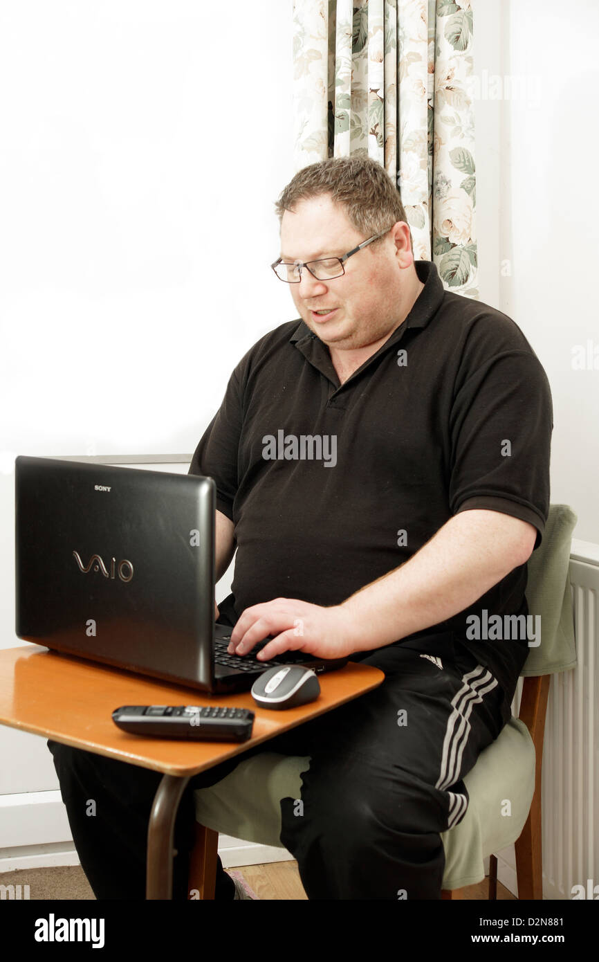 A MAN AT HOME USING HIS LAPTOP COMPUTER UK Stock Photo - Alamy