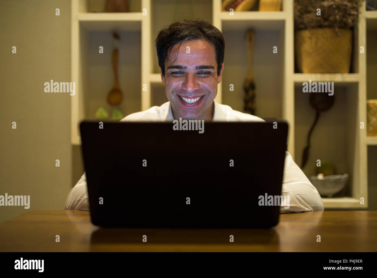 Technology at home. A handsome young man using his laptop at home Stock ...