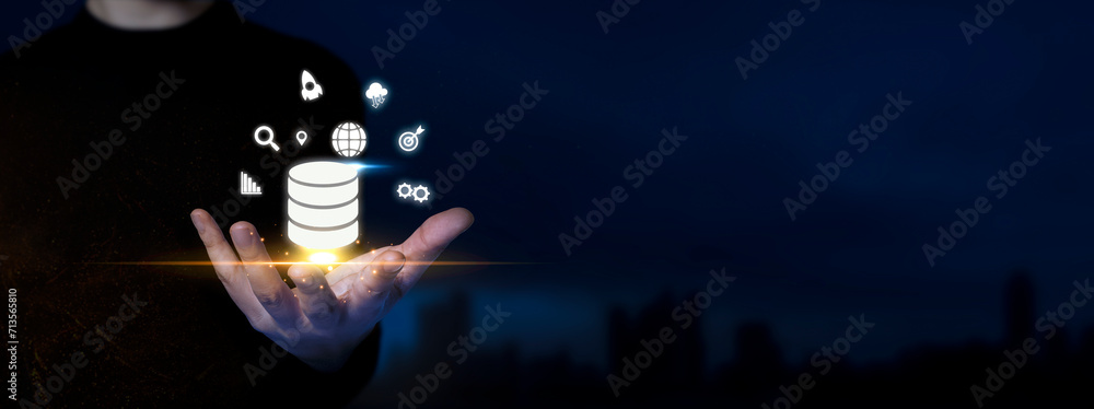 Database Management. Man Holds Data Icons. Information Handling ...