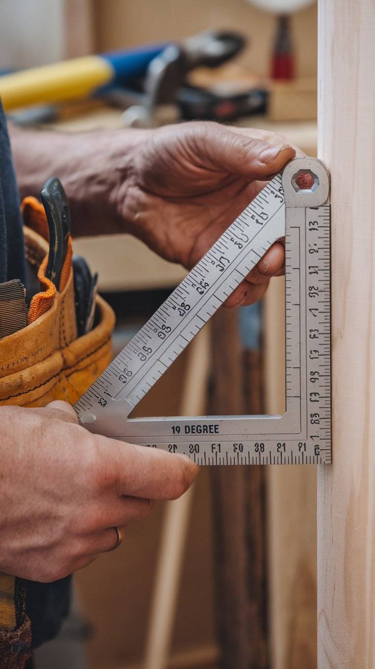 Man measuring a surface with a square in a workshop Stock Photo - Alamy