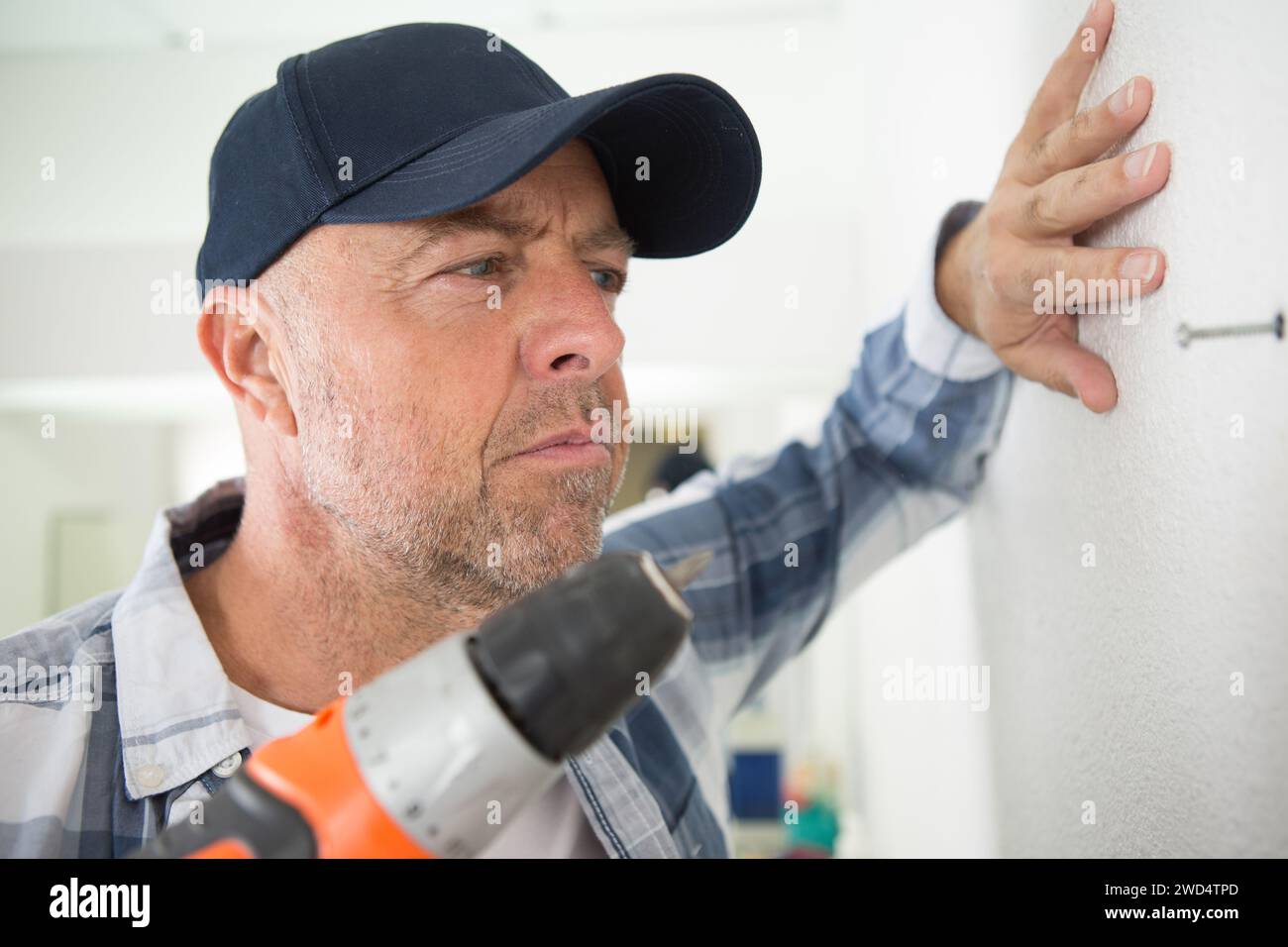 working man builder using electric screwdriver indoors Stock Photo - Alamy