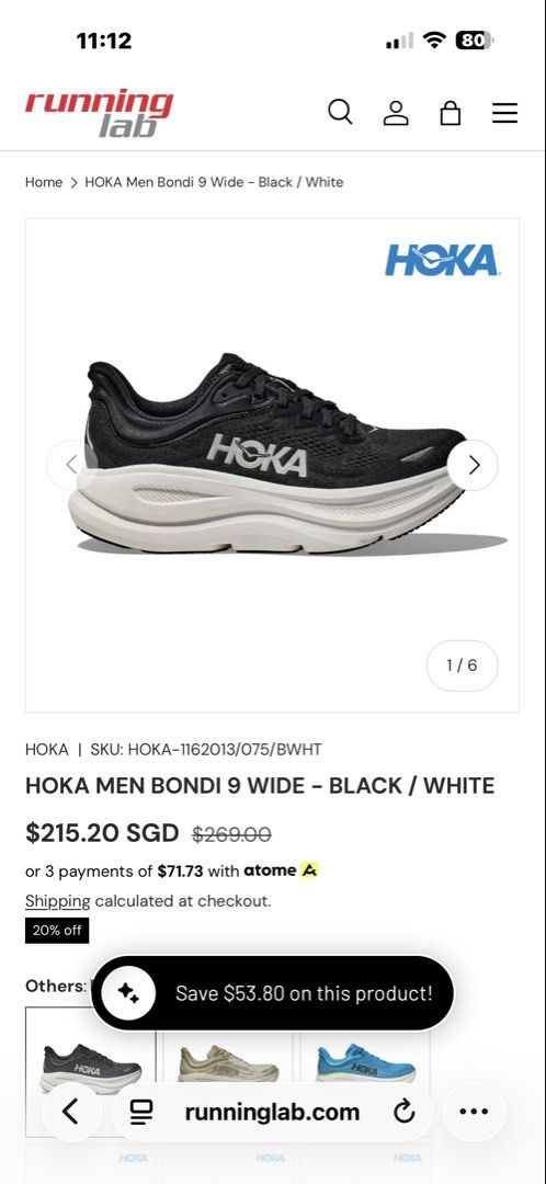 HOKA Men Bondi 9 Wide - Black/White (US 12) - From Running Lab ...