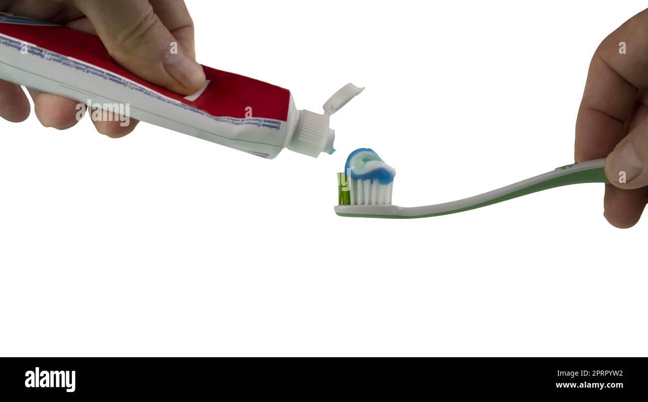 a man puts toothpaste on a toothbrush on a transparent background Stock ...