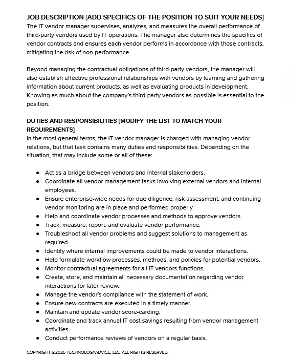 Hiring Kit: IT Vendor Manager - TechRepublic