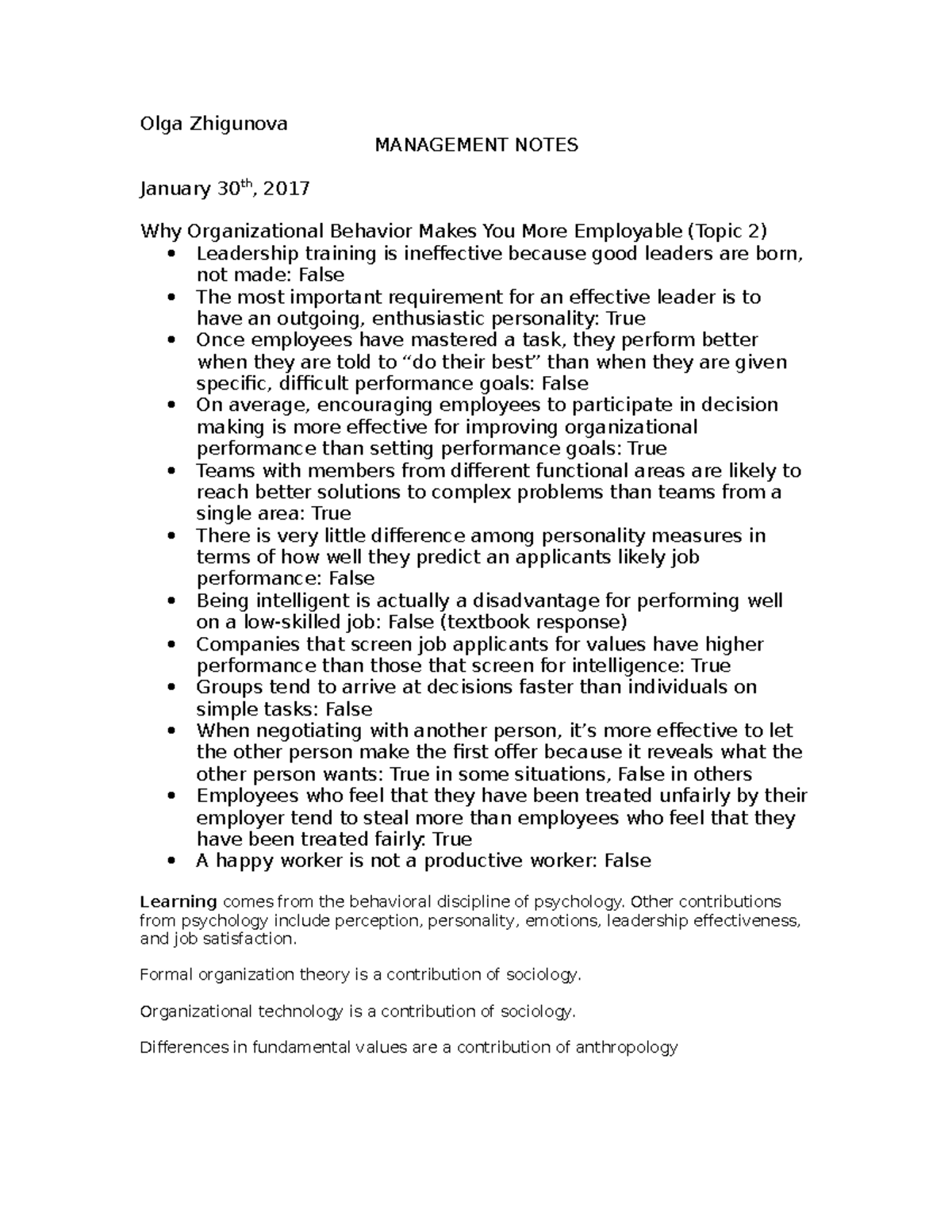 Management Notes - Olga Zhigunova MANAGEMENT NOTES January 30th, 2017 ...