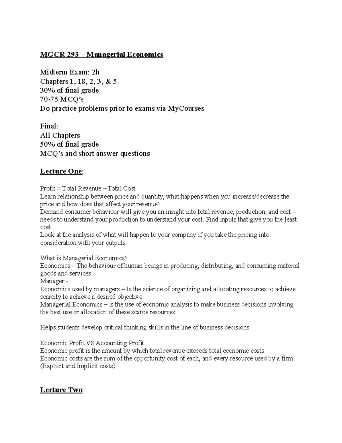 Managerial Economics Notes 2020-2021! - MGCR 293 – Managerial Economics ...