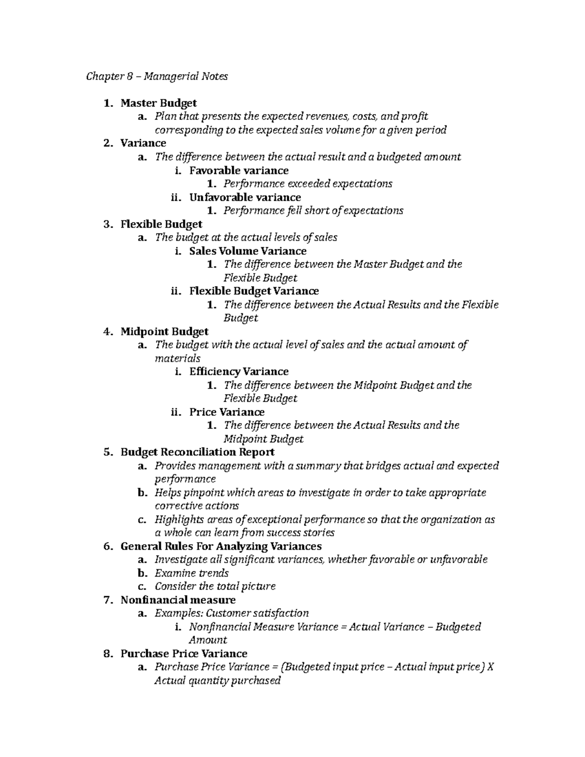 Chapter 7 - Managerial Notes - Managerial Accounting – Chapter 7 Budget ...
