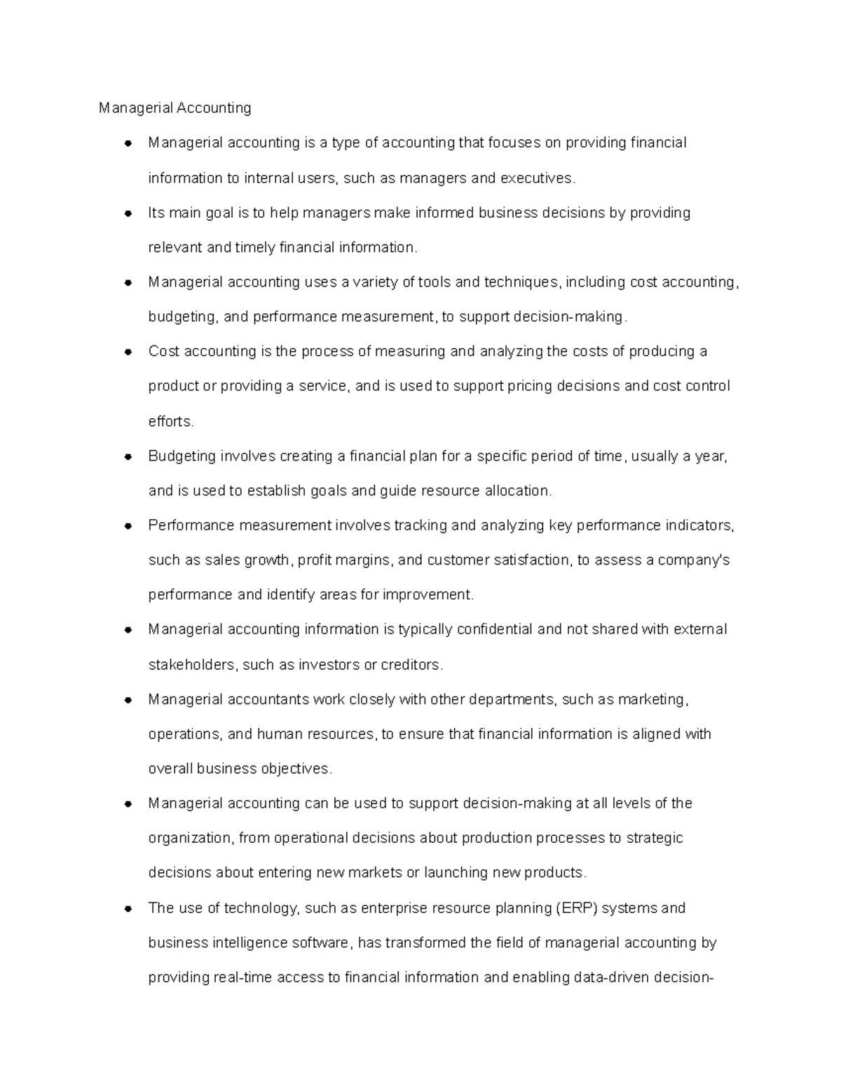 Managerial Accounting Notes | PDF | Business Process | Evaluation