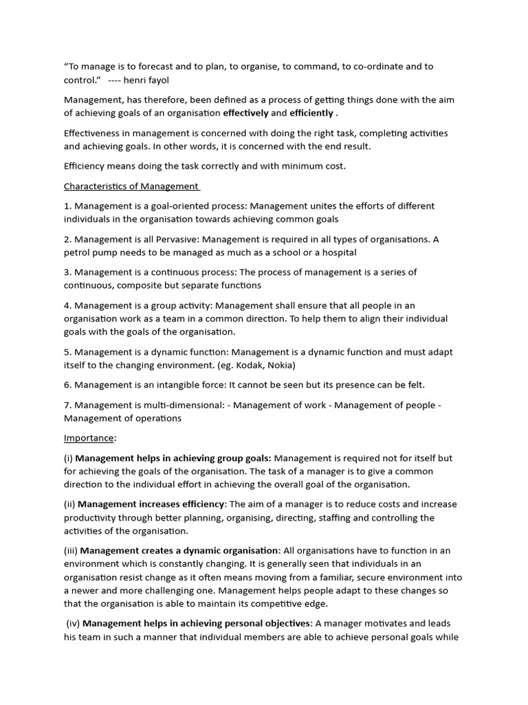 Management Short Notes | PDF | Goal | Resource