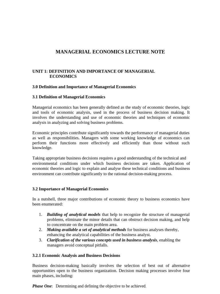 Introduction To Managerial Economics - Notes | PDF | Economics ...