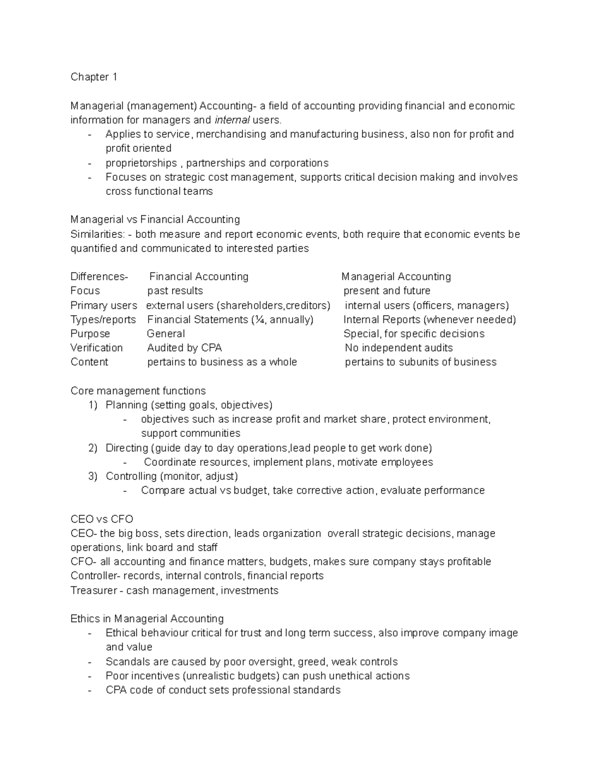 Managerial Accounting Notes - Chapter 1: Financial accounting ...