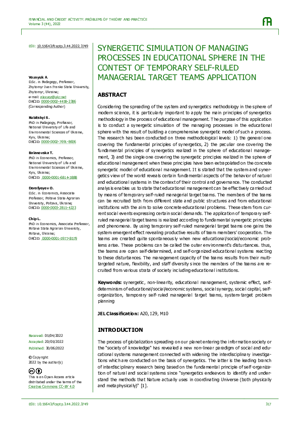 (PDF) SYNERGETIC SIMULATION OF MANAGING PROCESSES IN EDUCATIONAL SPHERE ...