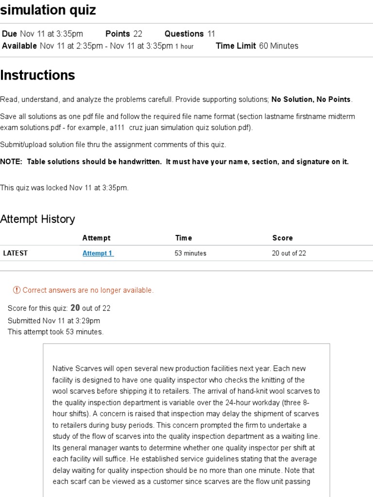 Simulation Quiz - MANAGEMENT SCIENCE (1B) | PDF
