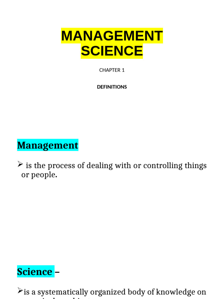 Management Science Overview: Concepts, Functions & Theories - Studocu