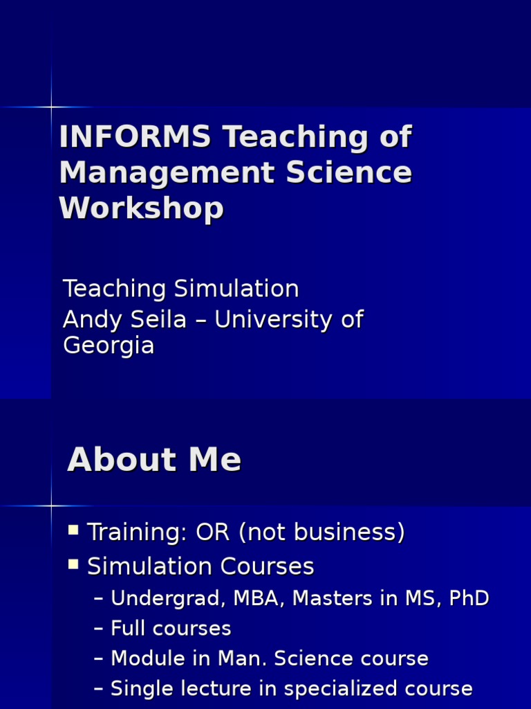 INFORMS Teaching of Management Science Workshop | PDF | Simulation ...