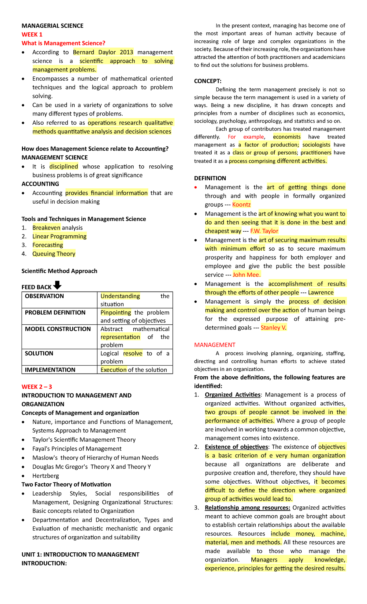 Managerial Science Review Notes: Key Concepts & Techniques - Studocu