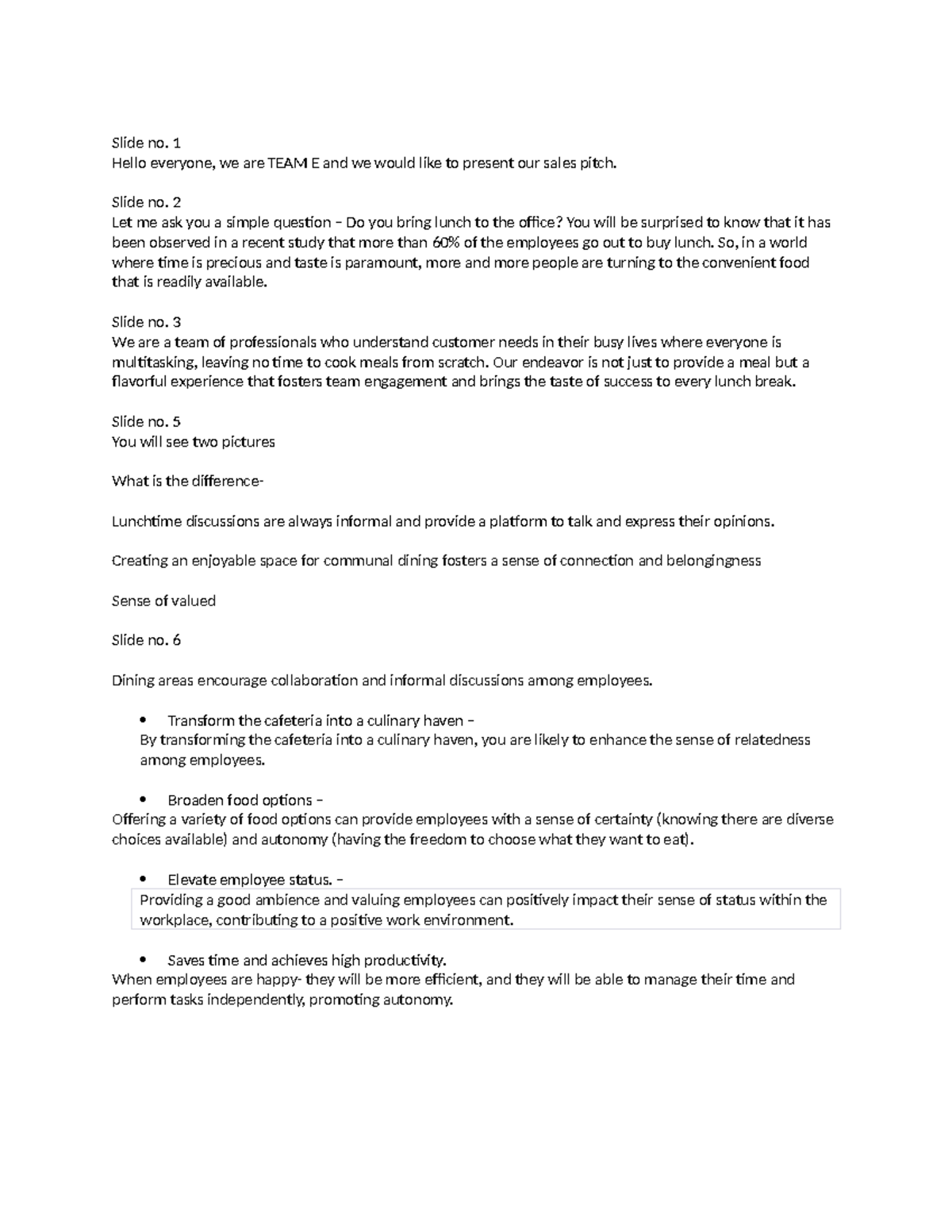 Script - Mandatory assignment - Slide no. 1 Hello everyone, we are TEAM ...