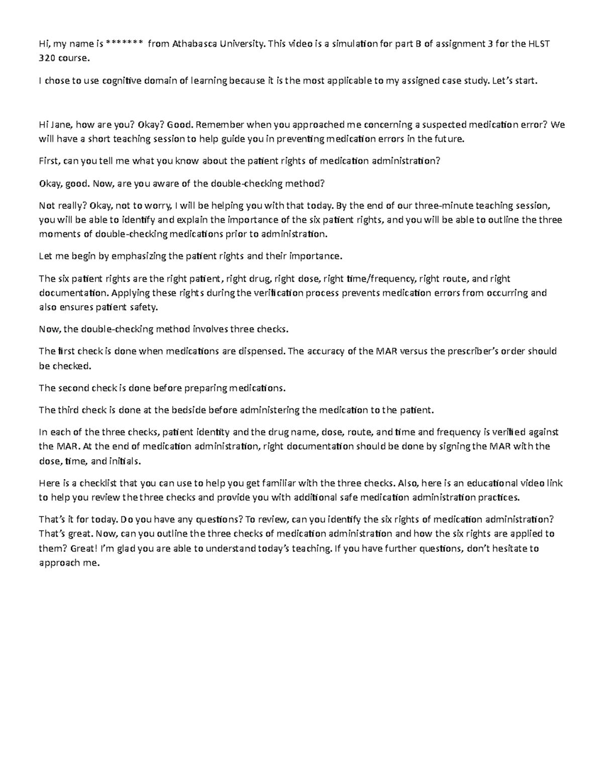 Script - mandatory assignment - Hi, my name is ******* from Athabasca ...