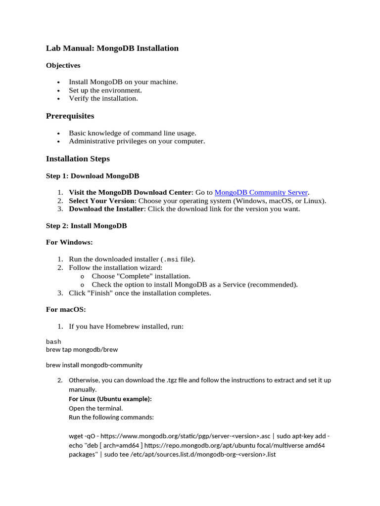 Lab Manual - Mongodb | PDF | Mongo Db | Sudo