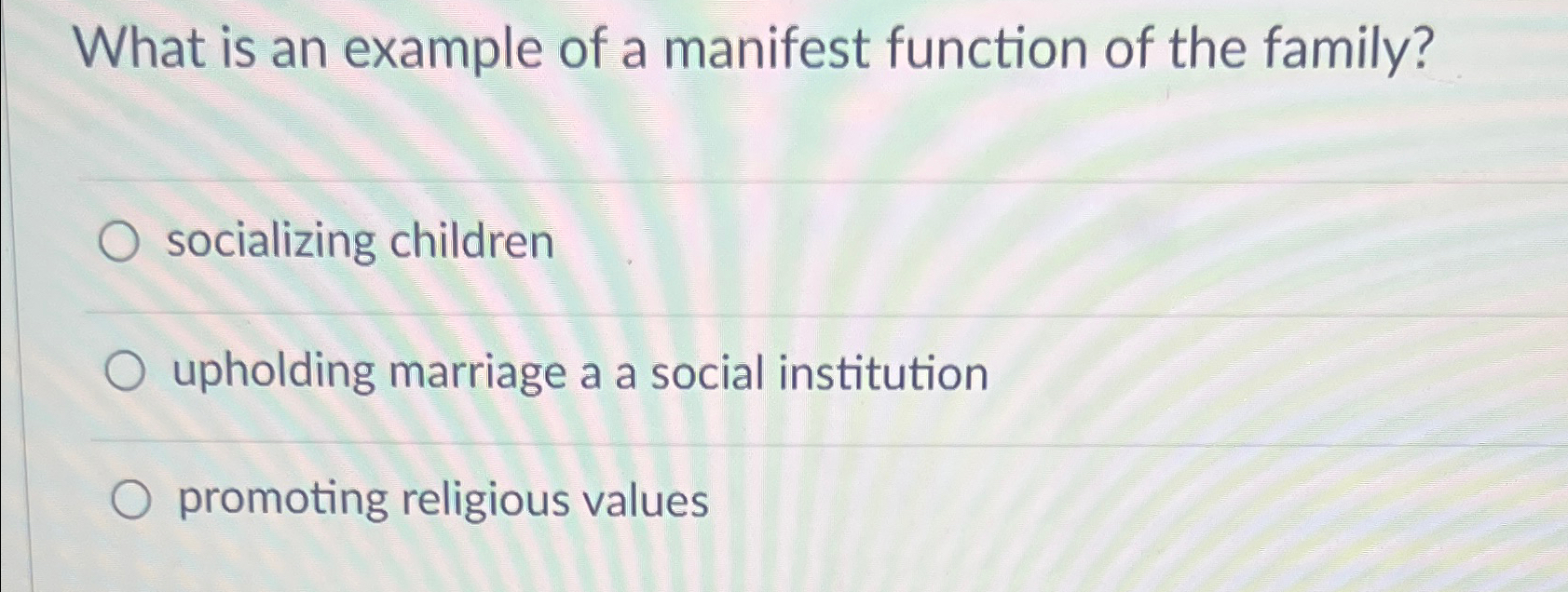 SOLVED: Manifest function and latent function of family