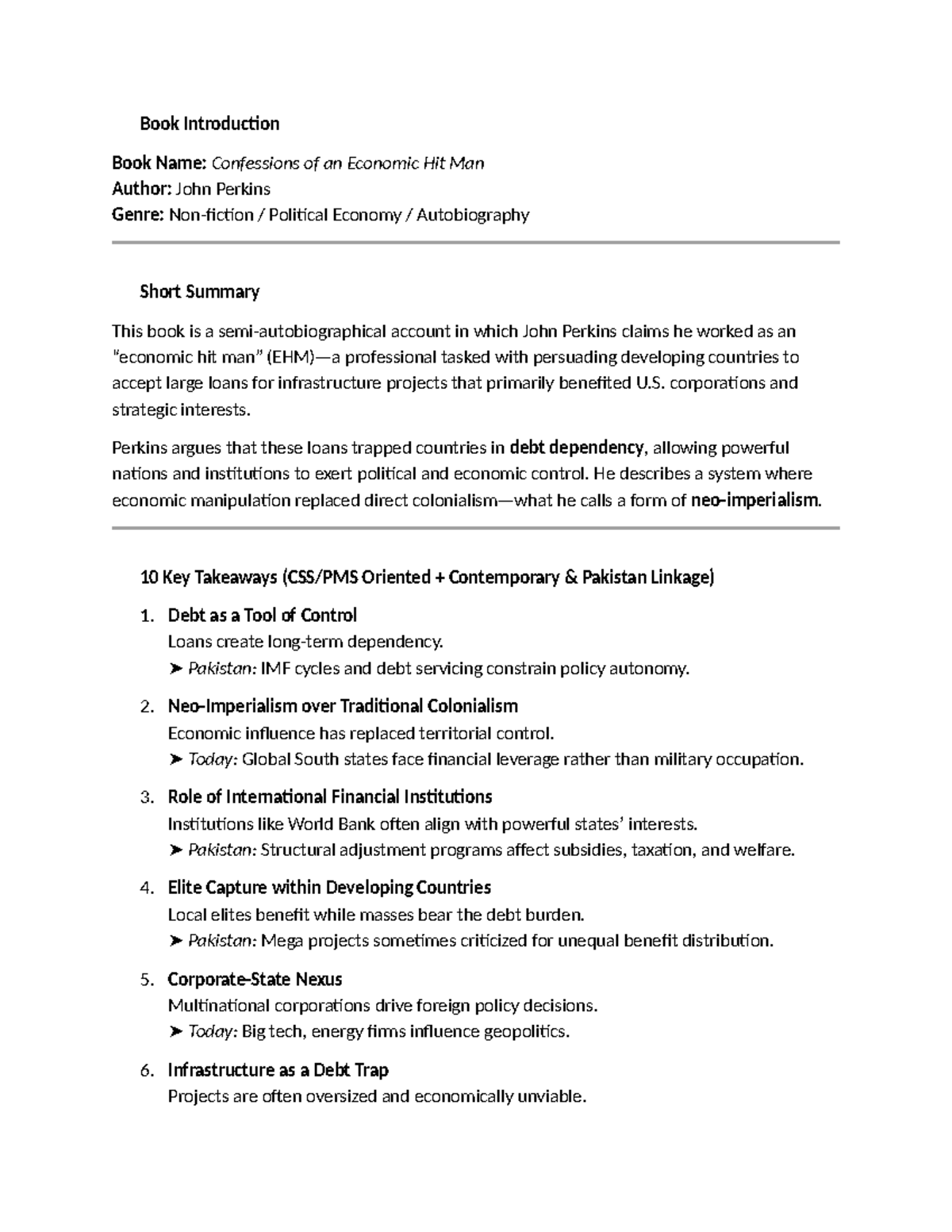 Confessions of an Economic Hit Man: Key Insights & Takeaways - Studocu