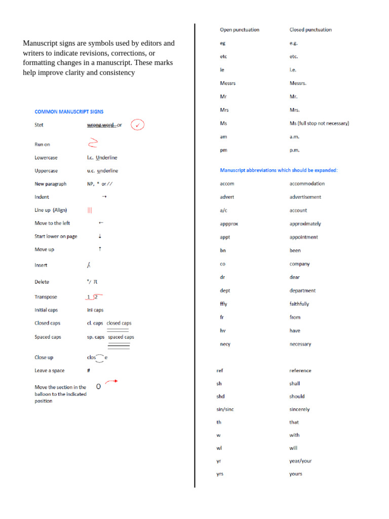 Lesson Note On Printer's correction signs manuscripts and abbreviations ...