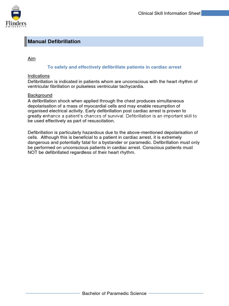 Manual Defibrillation - Information Sheet | PDF | Cardiac Arrest ...