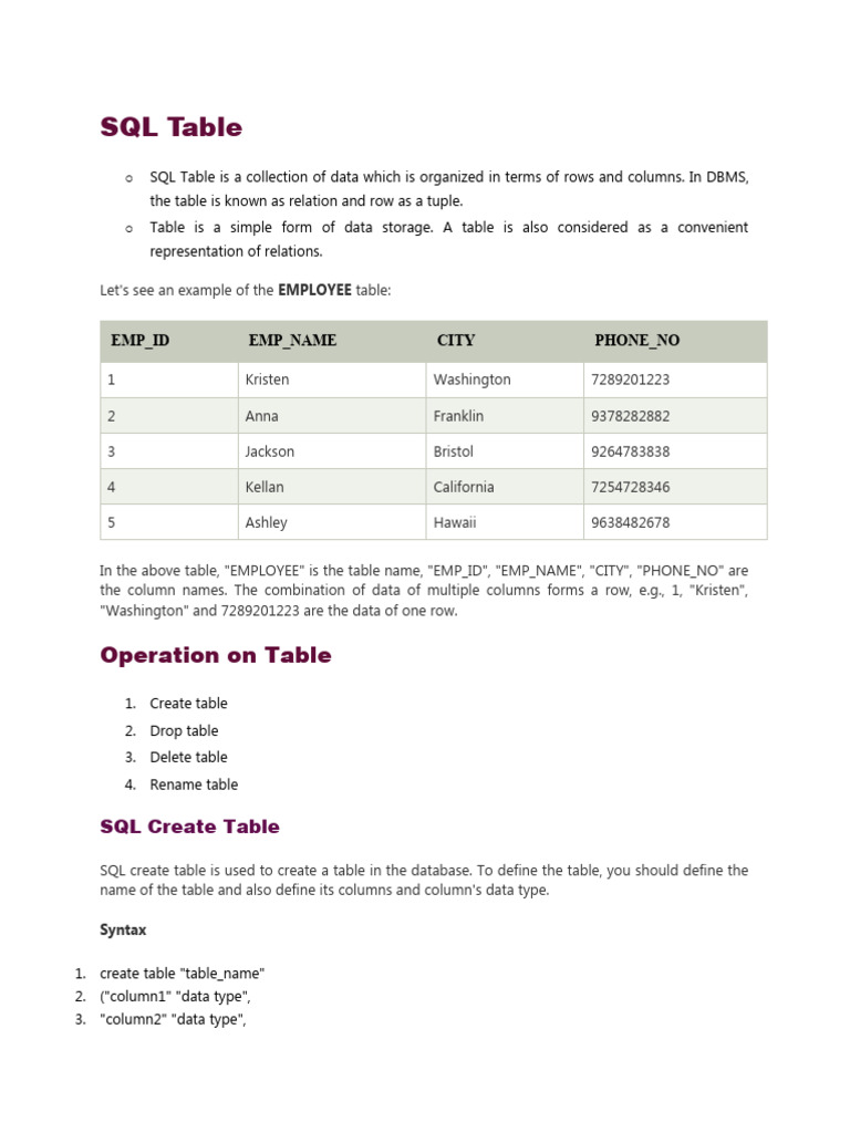 Creating and Managing SQL Tables: A Comprehensive Guide | Course Hero