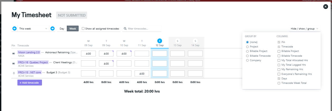 Using your timesheet