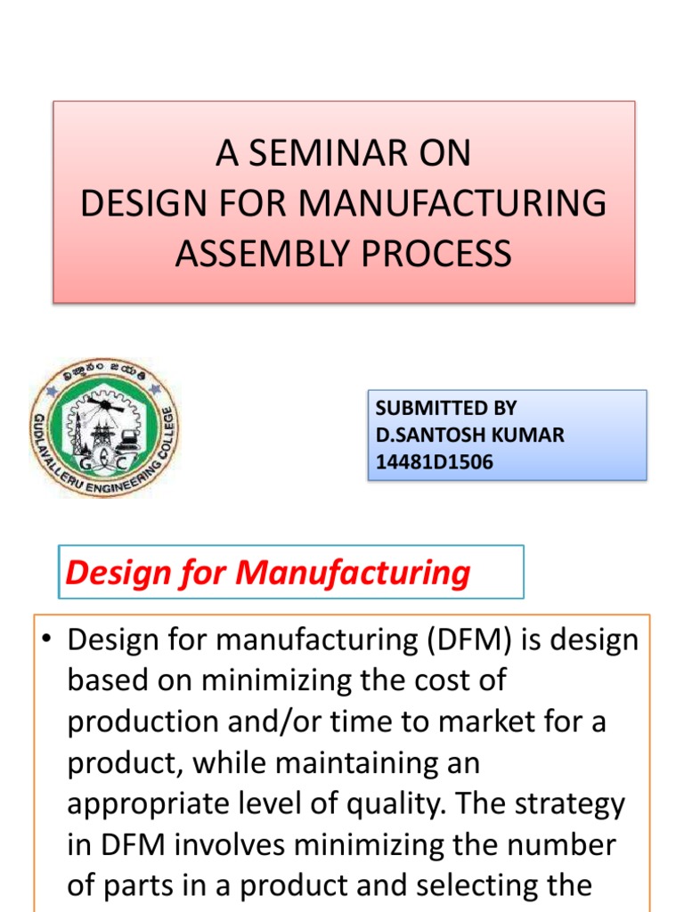 A Seminar On Design For Manufacturing Assembly Process: Submitted by D ...