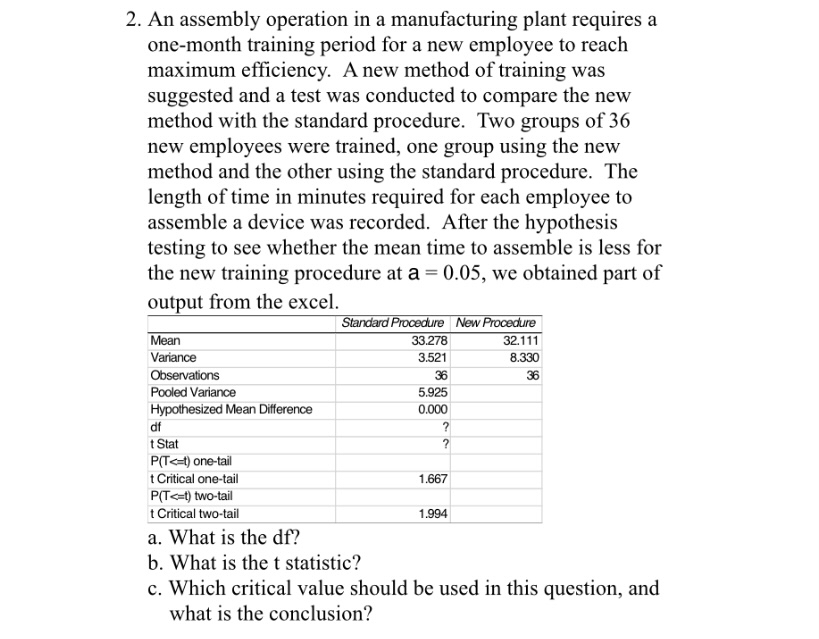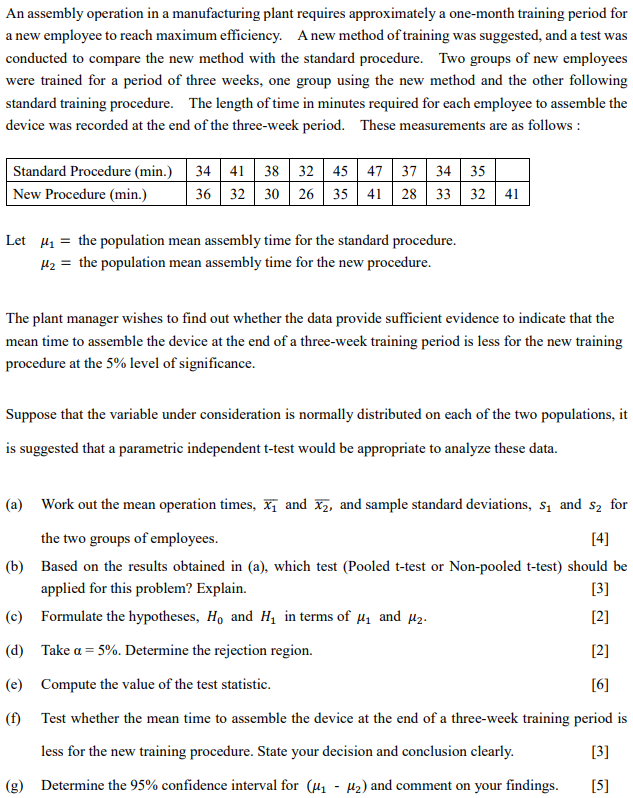 Solved An assembly operation in a manufacturing plant | Chegg.com