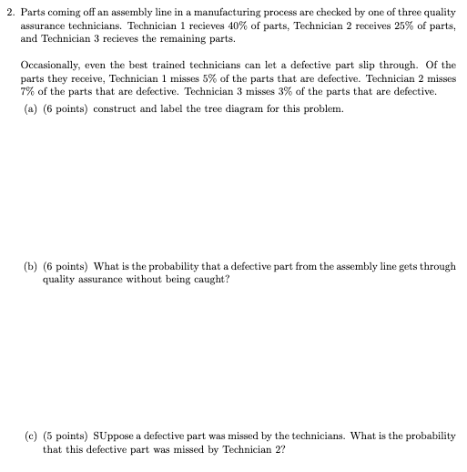 Solved 2. Parts coming off an assembly line in a | Chegg.com
