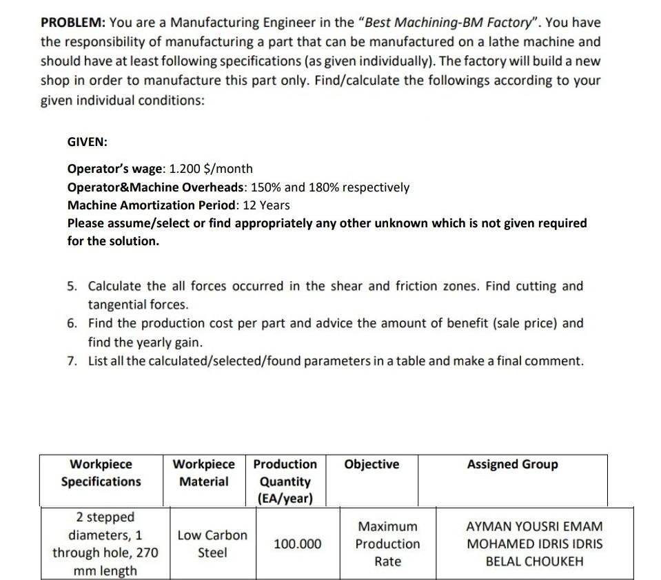 Solved PROBLEM: You are a Manufacturing Engineer in the | Chegg.com