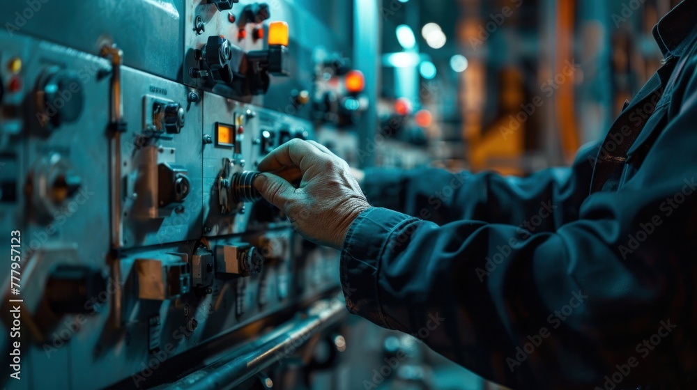 Modern Industrial Control Panel in HighTech Manufacturing Facility with ...
